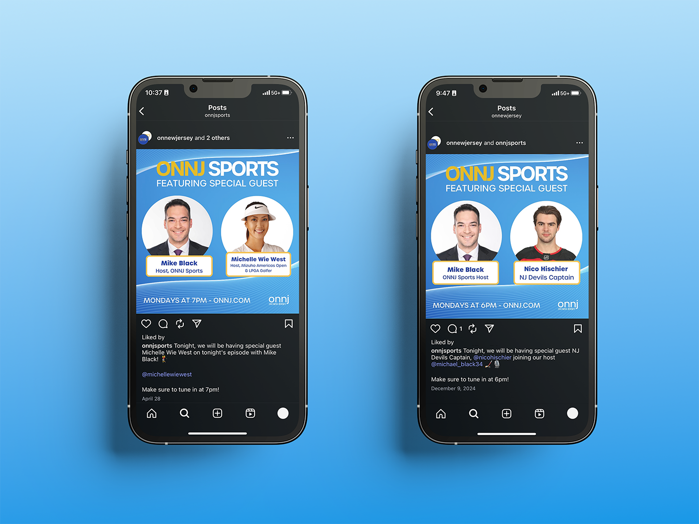 Since November 2024, I’ve had the opportunity to freelance with On New Jersey (ONNJ), a TV streaming channel owned by Media First Group. I’ve collaborated with their team on rebranding several of their shows, designing new logos, animated show openers, billboards, and social media templates. My work focuses on creating a cohesive, eye-catching visual identity for each program while aligning with the overall ONNJ brand.